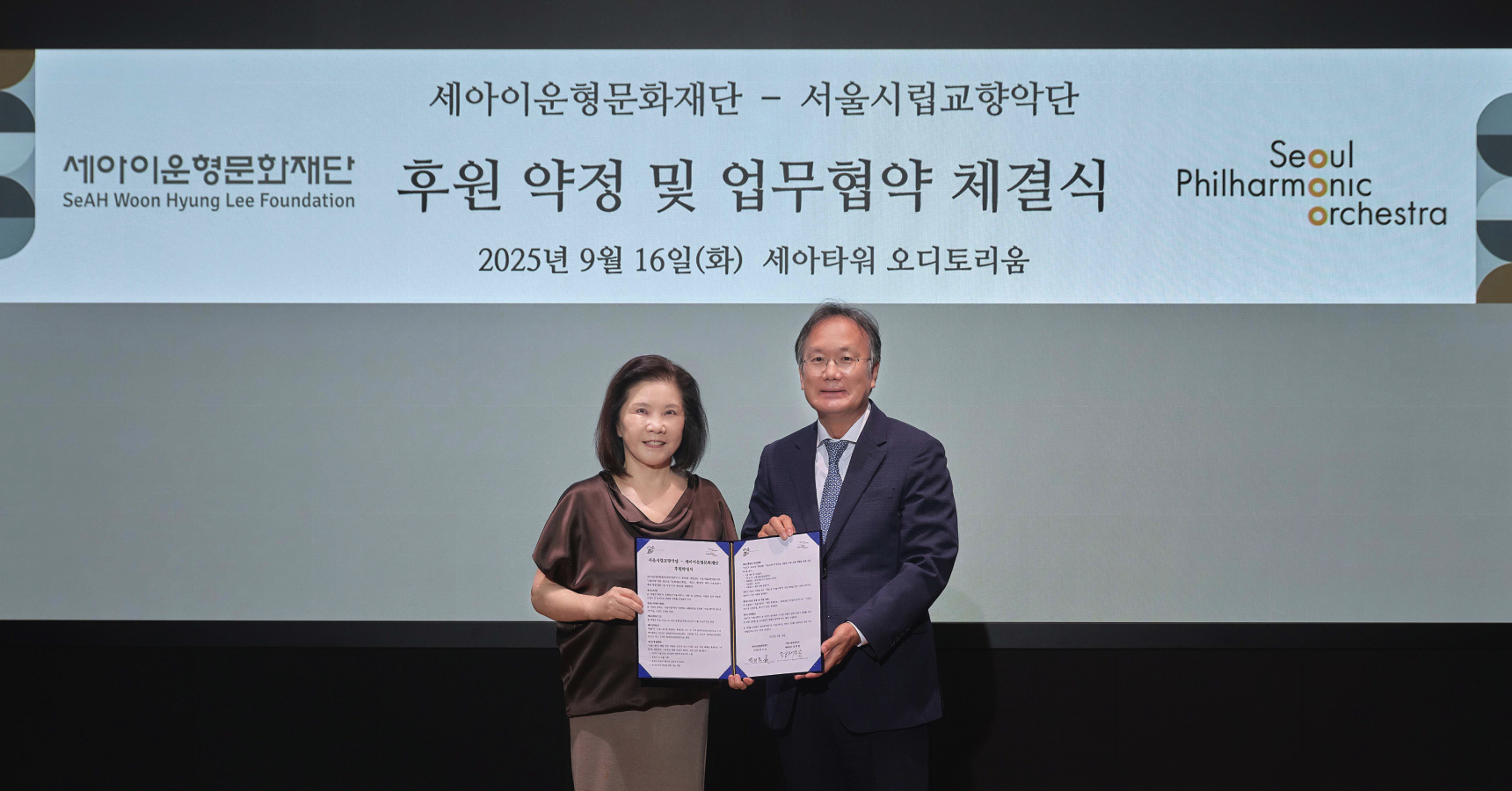 세아이운형문화재단과 서울시립교향악단이 문화예술 발전을 위한 후원 약정 및 업무협약을 체결했다. 9월 17일, 합정동 세아타워에서 열린 협약식에는 세아이운형문화재단 박의숙 이사장, 서울시향 정재왈 대표이사 등 주요 관계자들이 참석해 앞으로의 협력 의지를 다졌다.