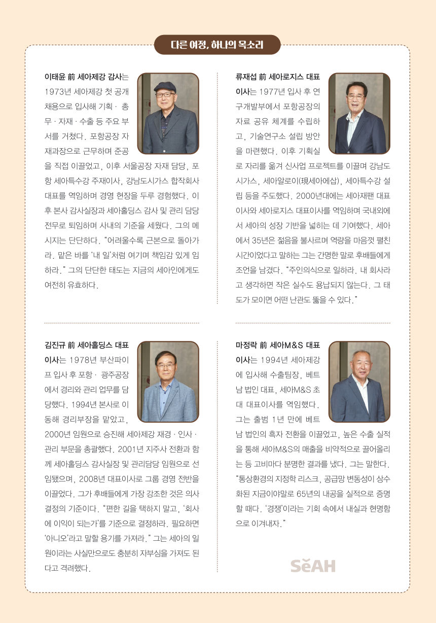 그 주인의식이야말로 세아의 65년을 지탱해온 힘이자, 앞으로의 100년을 향해 나아갈 새로운 원동력이